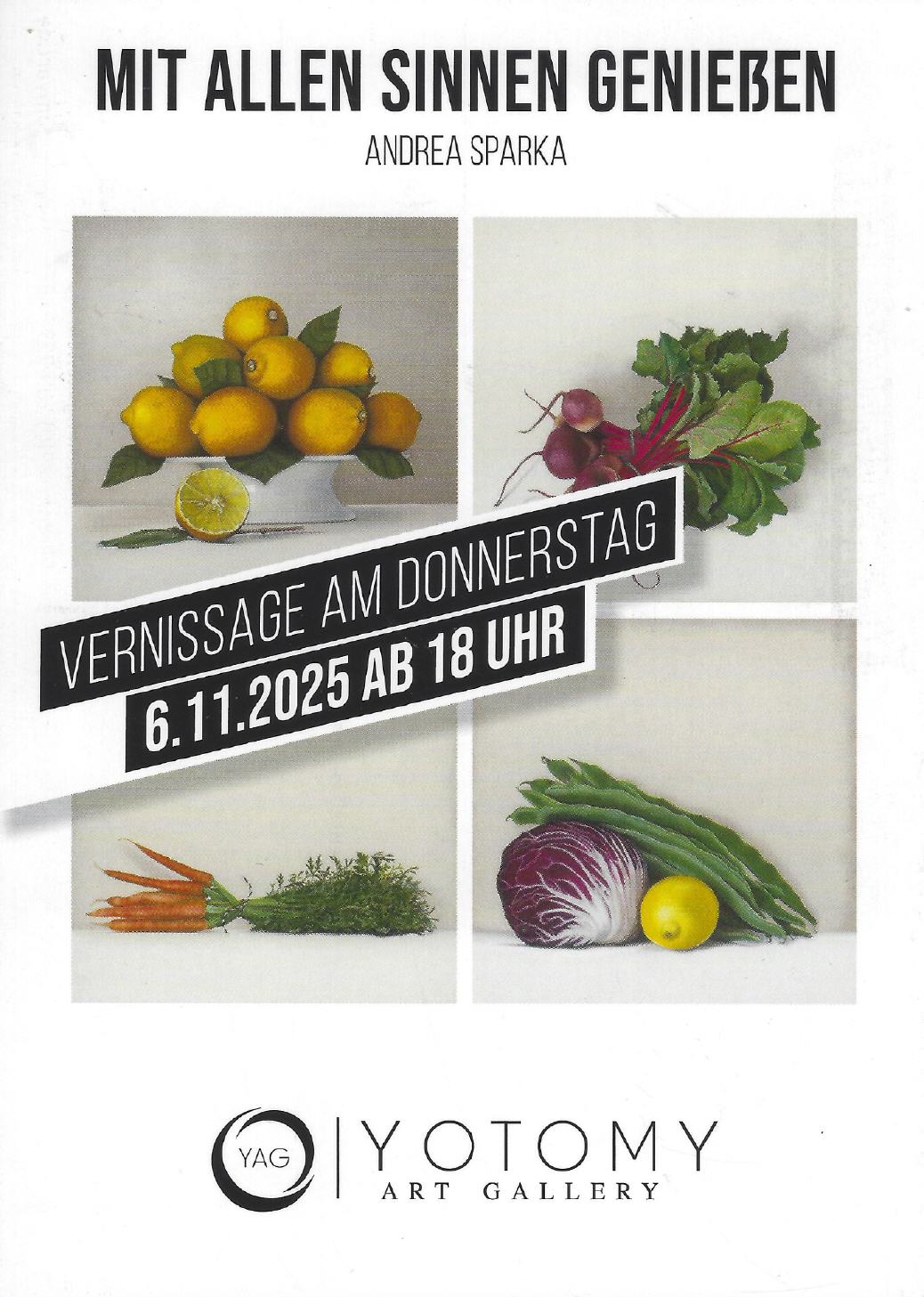 Sie sind hier: Startseite ANDREA SPARKA ART Ausstellung "Mit allen Sinnen genießen" in der Yotomy Art Gallery, Kuhstr. 8, 47041 Duisburg Gerne können die Werke noch bis zum 12.12.2025 vor Ort besichtigt werden. Öffnungszeiten: Montag bis Freitag 10.00 bis 16.00 Uhr